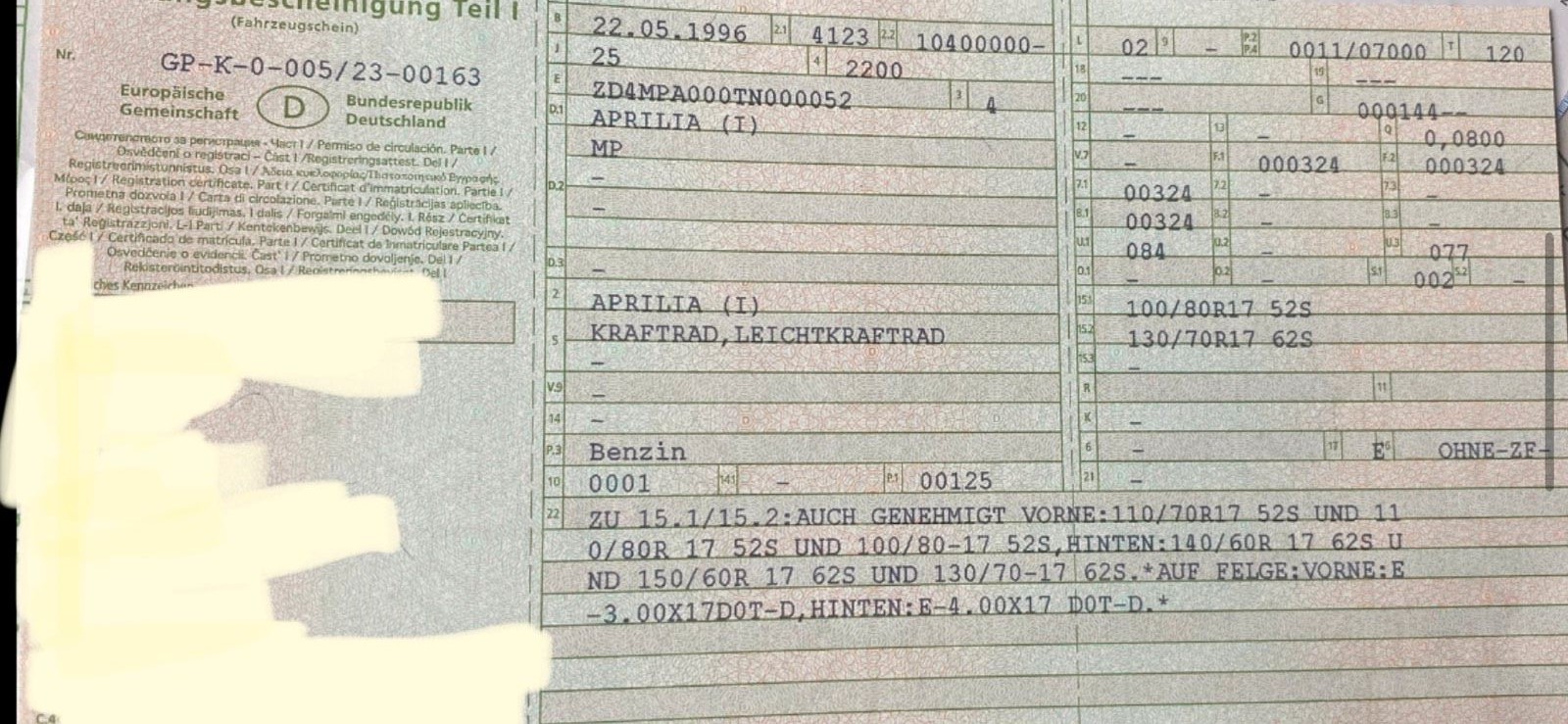 Der Rest der Fahrzeugpapiere passt ja eh zu 95%.