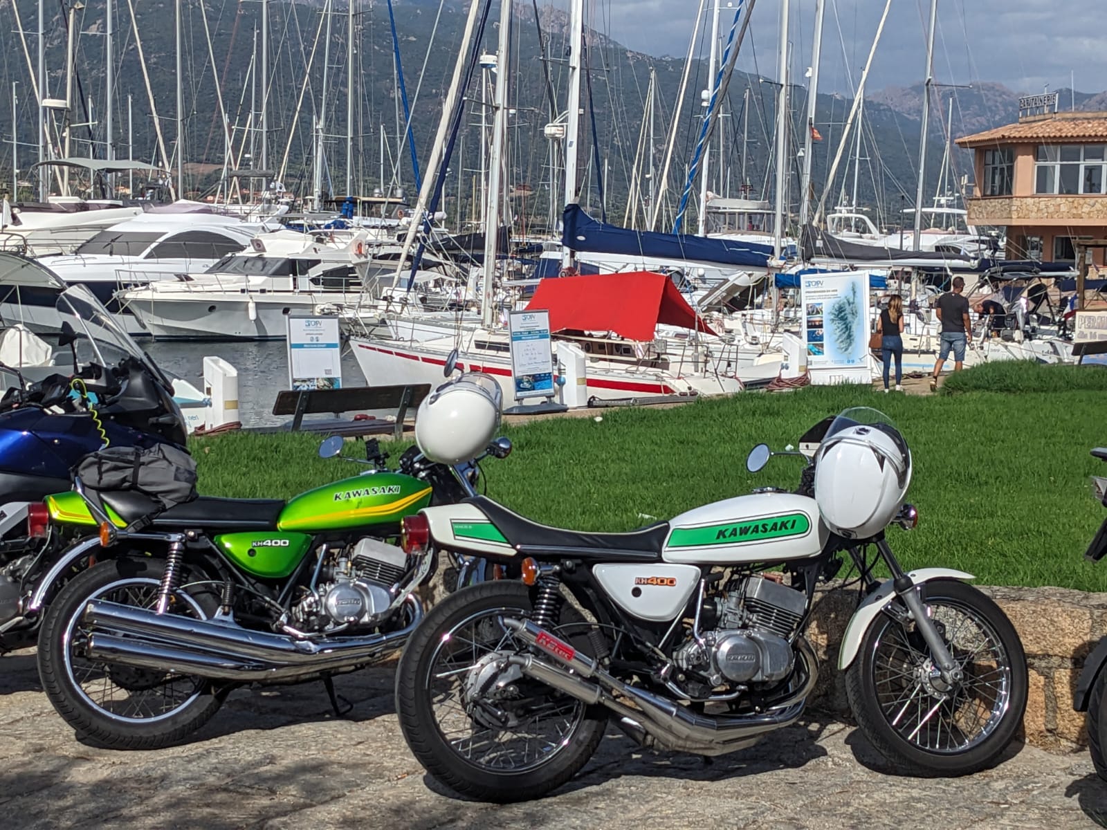 nach Dirk kam in der Woche 2 auch Volker dazu -Mir bereitete besonders viel Freude , dass er diesmal neben seiner Yamaha TZR 250 auch seine S3 dabei hatte, die er vor Längerem von Rainer gekauft hatte , der wohl keine Verwendung mehr für die Kleine hatte . Die S3 haben wir damals zusammen als Zwilling aus Restteilen eines 400èrter Konvolutes zusammengeschraubt und wollten da öfters zusammen irgendwo auf Treffen erscheinen -- was aber nie Wirklichkeit wurde ! Umso schöner war der Umstand , dass genau dies jetzt möglich war und die Beiden zusammen zogen schon sehr die Blicke der Einheimischen auf sich!