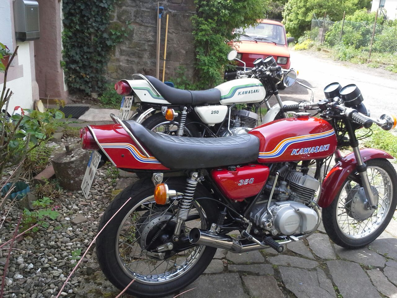 Da wären die S1 250 aus 1972 mit der S2 350 aus 1972, die ein 3 in 1- Auspuff ziert, mit "göttlichem" Sound