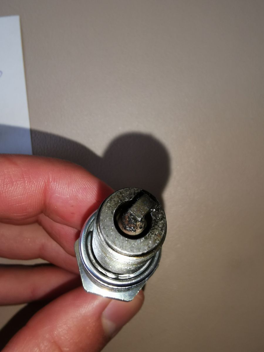 Auch die neue Zündkerze (die ohne Farbwechsel) habe ich euch abgelichtet. Aus der werde ich nicht schlau.. Die hat vermutlich aber auch viel abbekommen..