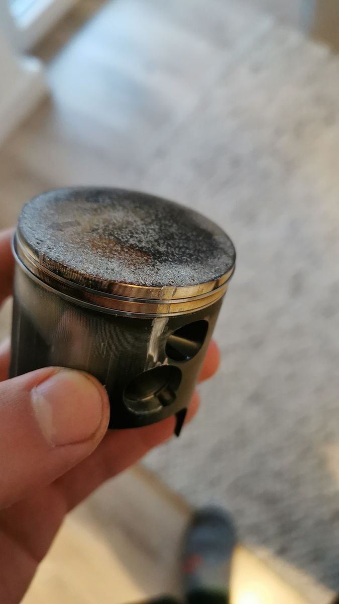 Am Freitag bin ich morgens 30km problemlos gefahren. Gedanke war, neue Zündkerze rein, um das „finale Setting“ zu testen. Die alte Zündkerze hat vorher den gesamten Abstimmungsprozess mitgemacht. Hier der erste Punkt/ die erste Frage an euch. Was hat es mit der Zündkerze auf sich? Sie hat einen ersichtlichen Farbverlauf, von einem hellen Braun, zu einem dunkleren. Siehe Bild. Da die Farben grundsätzlich okay waren und die AF1 super lief, habe ich mir da nicht weiter Gedanken gemacht. Kolbenboden hatte auch eine leicht/ hellbraune Verfärbung.