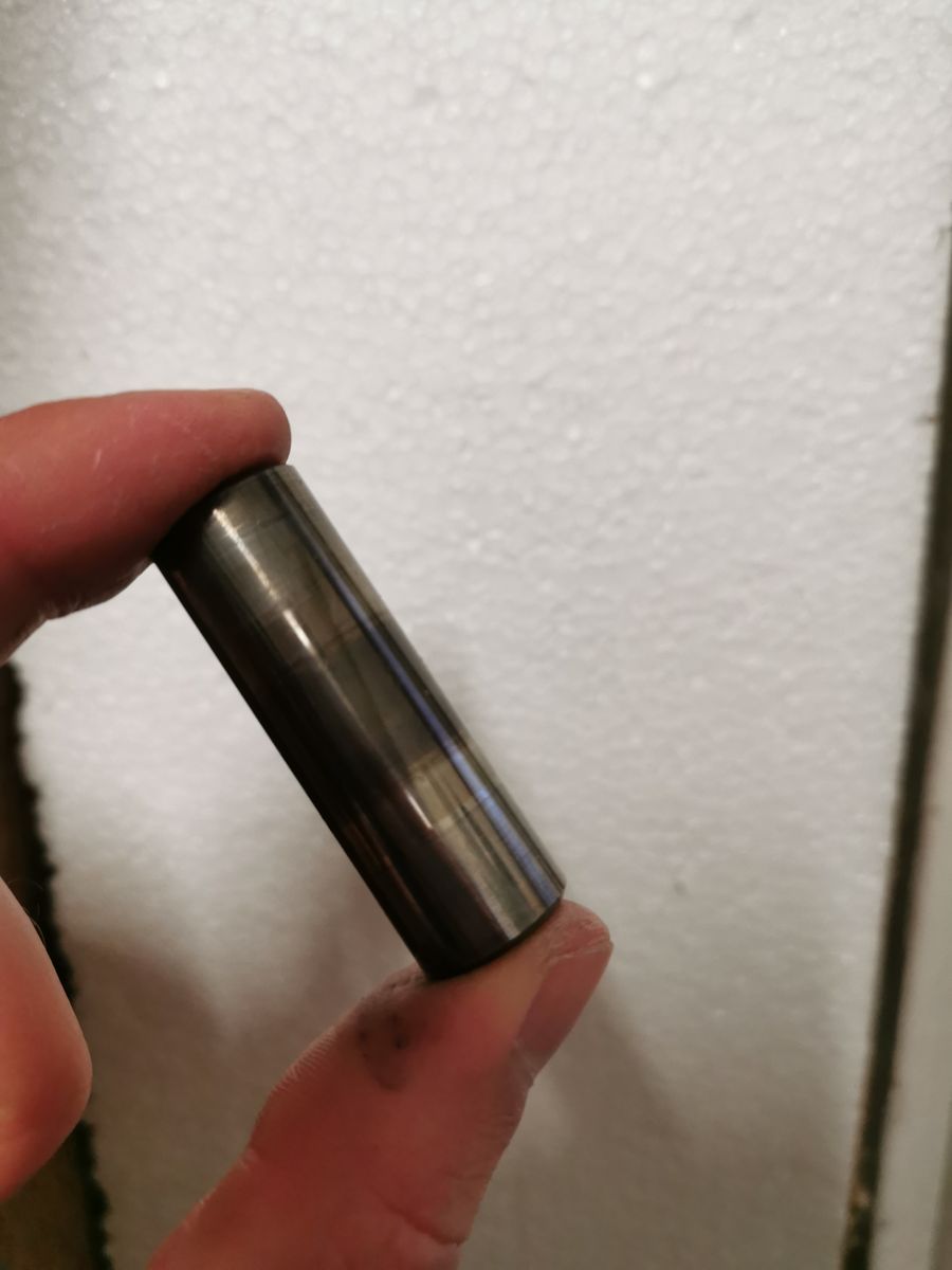 Zuhause habe ich durchs Kerzenloch geschaut und siehe da. Eine Kraterlandschaft. Nach Zylinderausbau die Gewissheit…da hat was gewütet. Das obere Pleul-Lager??!! Damit habe ich wirklich nicht gerechnet. Die Bilder sind denke ich eindeutig. Teile des Lagers haben sich wohl nach oben gearbeitet?