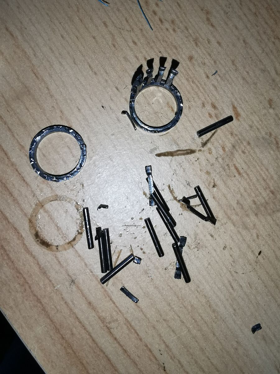 Zuhause habe ich durchs Kerzenloch geschaut und siehe da. Eine Kraterlandschaft. Nach Zylinderausbau die Gewissheit…da hat was gewütet. Das obere Pleul-Lager??!! Damit habe ich wirklich nicht gerechnet. Die Bilder sind denke ich eindeutig. Teile des Lagers haben sich wohl nach oben gearbeitet?