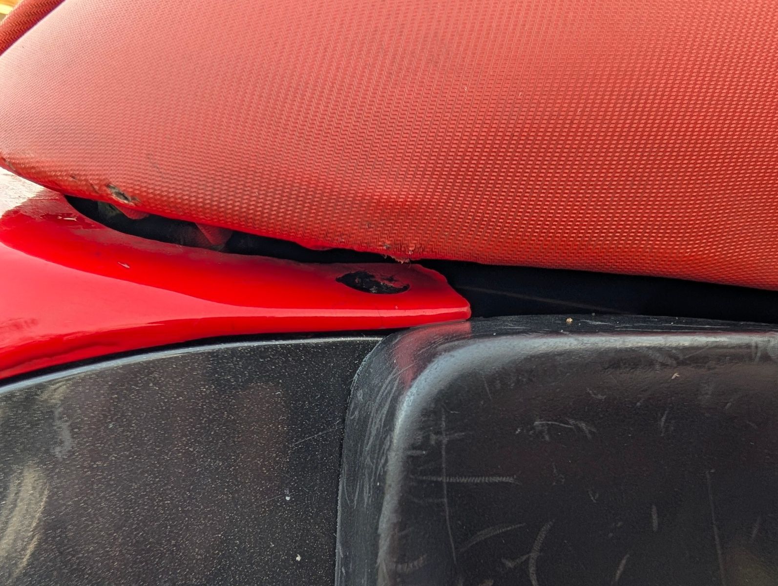 Irgendein Vorbesitzer hat das verpfuscht, jetzt habe ich aktuell gar nichts drin - das führt dazu, dass sich die "Klappe" nicht korrekt in den Soziussitz einhaken kann und während der Fahrt ein Eigenleben entwickelt.