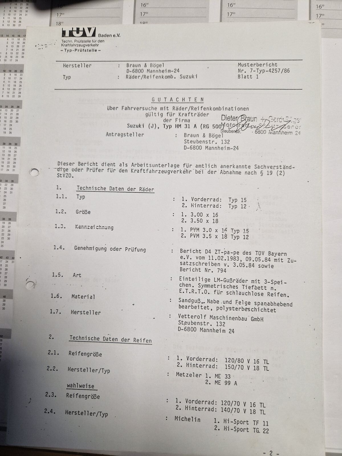 Hab heute den "neuen" Bridgestone V02 in 160/630 R17 bekommen...