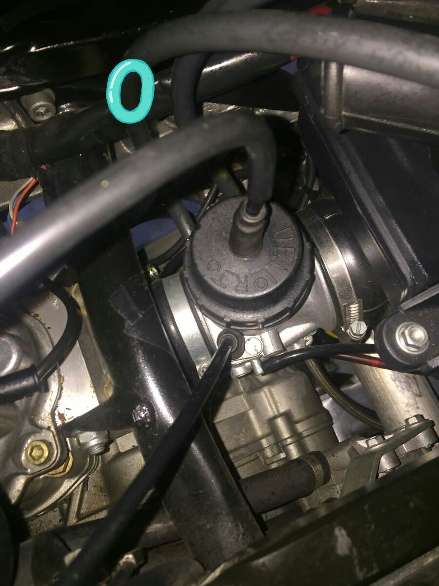 Wie mein Vorredner sagte, man kann am Vergaser in Fahrtrichtung rechts ein kleines Loch bohren und den Unterdruck abgreifen, siehe Schlauch mit Markierung '0' auf dem Bild. Der Benzinhahn ist der originale von der PY, das klappt alles soweit bestens. Ich hab auch nen ganz neuen 34er VHSB aus 2019 drin.
