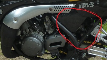Die seitliche Verkleidung links ist kürzer, damit der Ausgleichsbehälter dort Platz hat.