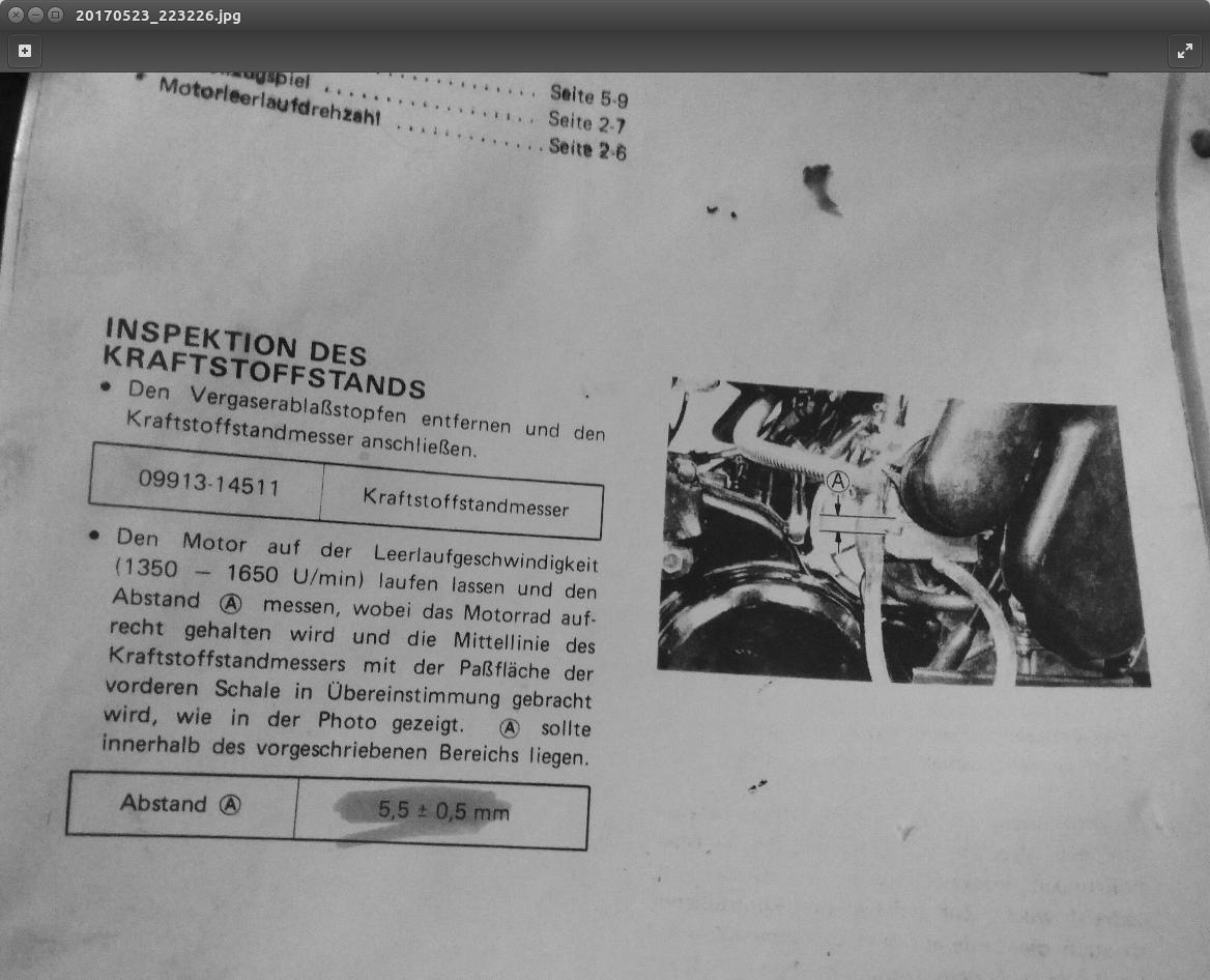 Ich bin dabei den Schwimmerstand korrekt einzustellen - Laut Handbuch wird von der Vorderkante gesprochen auf dem Foto ist aber die Hinterkante des Vergasers zu sehen - Von welcher Kante wird nun ausgegangen?