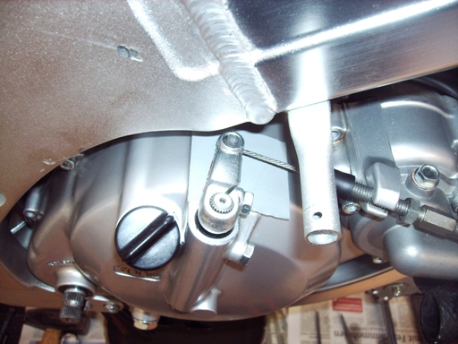 2) Hebel mit Zange bis zum Anschlag nach vorne gedreht,also voll augerückte Kupplung,mit dem Ergebnis dass sich das HR trotzdem nicht frei drehen läßt.