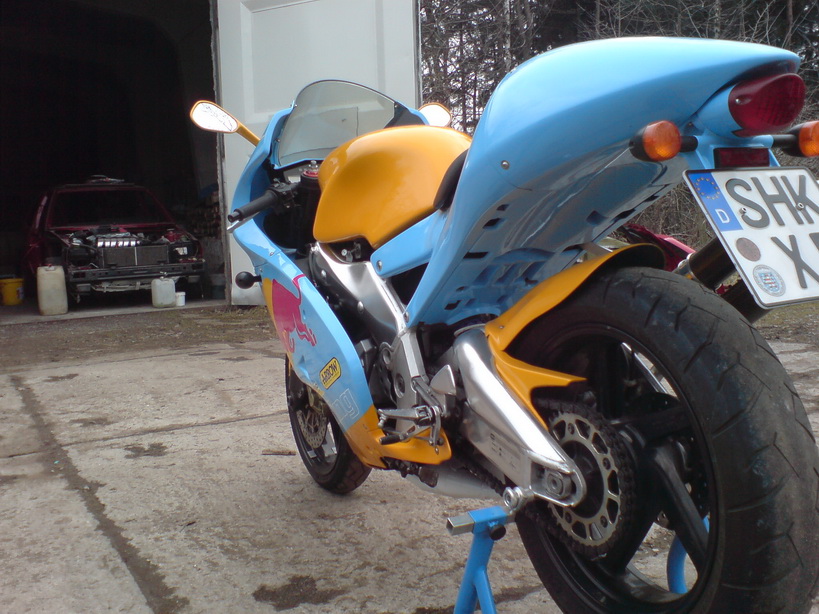 Hallo, ich möchte euch jetzt mal meine Aprilia RS 250 mit Baujahr 2000 und 19000 km vorstellen. Es wurden ein Paar Teile erneuert.