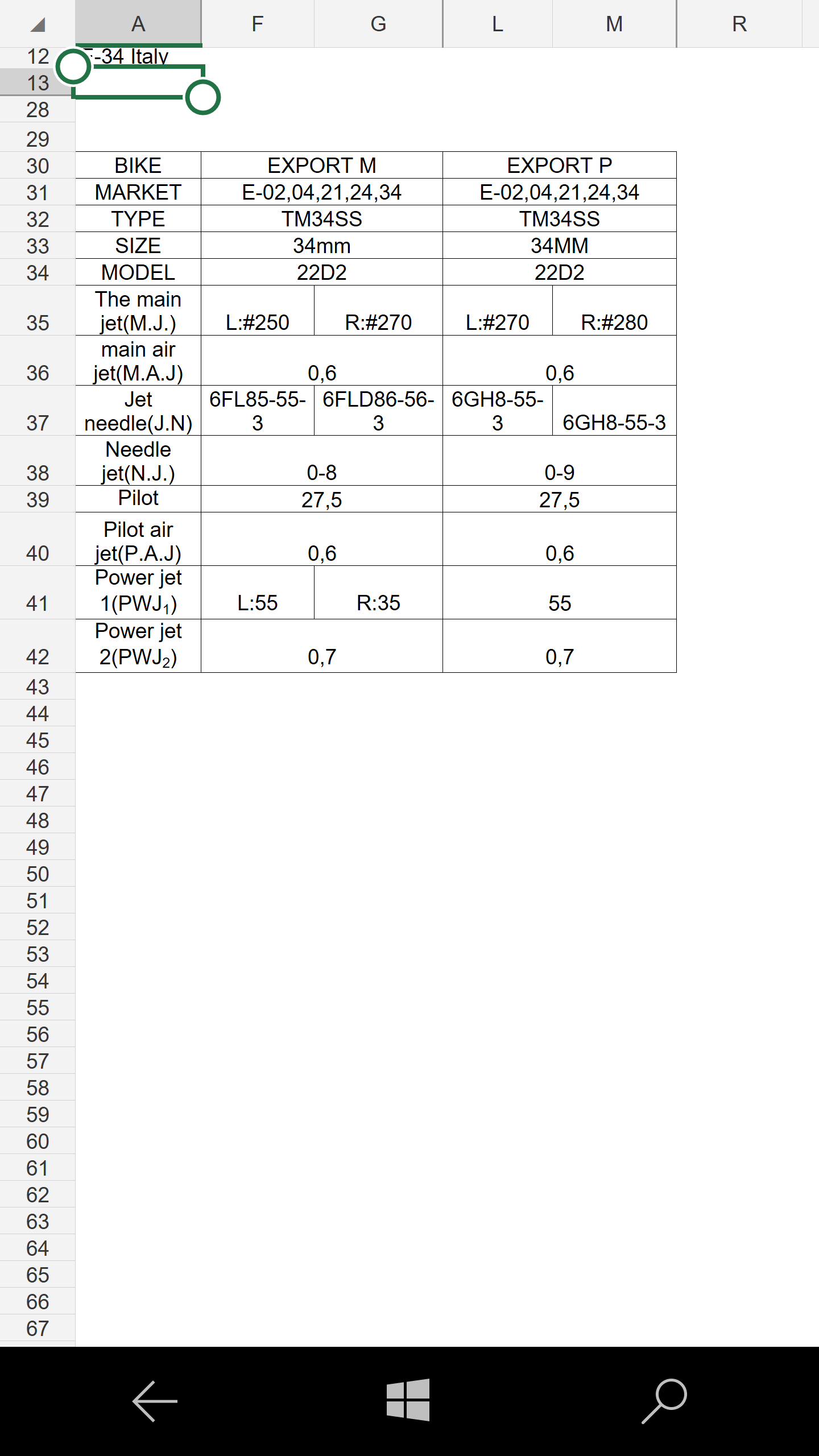 Vergaser sind Typ 22D2 bedüst wie rechts in der Tabelle abweichend ist Nj mit 0-8 -