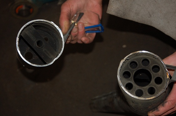 vielen Dank für die Antwort, mein Problem ist, dass der Motor in einer Lambretta-Karosserie hängt. Also muss ich von der Gesamtlänge her kürzer werden. Ich hatte mir gedacht ca 10 Zentimeter inkl. des Prallbleches mit den 8 Löchern rauszutrennen und das Prallblech mit dem Kleinen Durchgang dann an der abgetrennten Stelle wieder dran zu schweißen.
