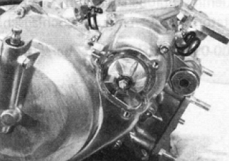Was das Kupplungsgehäuse betrifft, so habe ich alle Schrauben entfernt; es scheint jedoch im Bereich der Wasserpumpe etwas zu hängen. Habe daher das Pumpengehäuse entfernt und dahinter das Flügelrad entdeckt, welches auf einer entsprechenden Welle sitzt. So wie es aussieht, geht der Deckel nicht weg, so lange das Flügelrad dort noch draufsitzt.