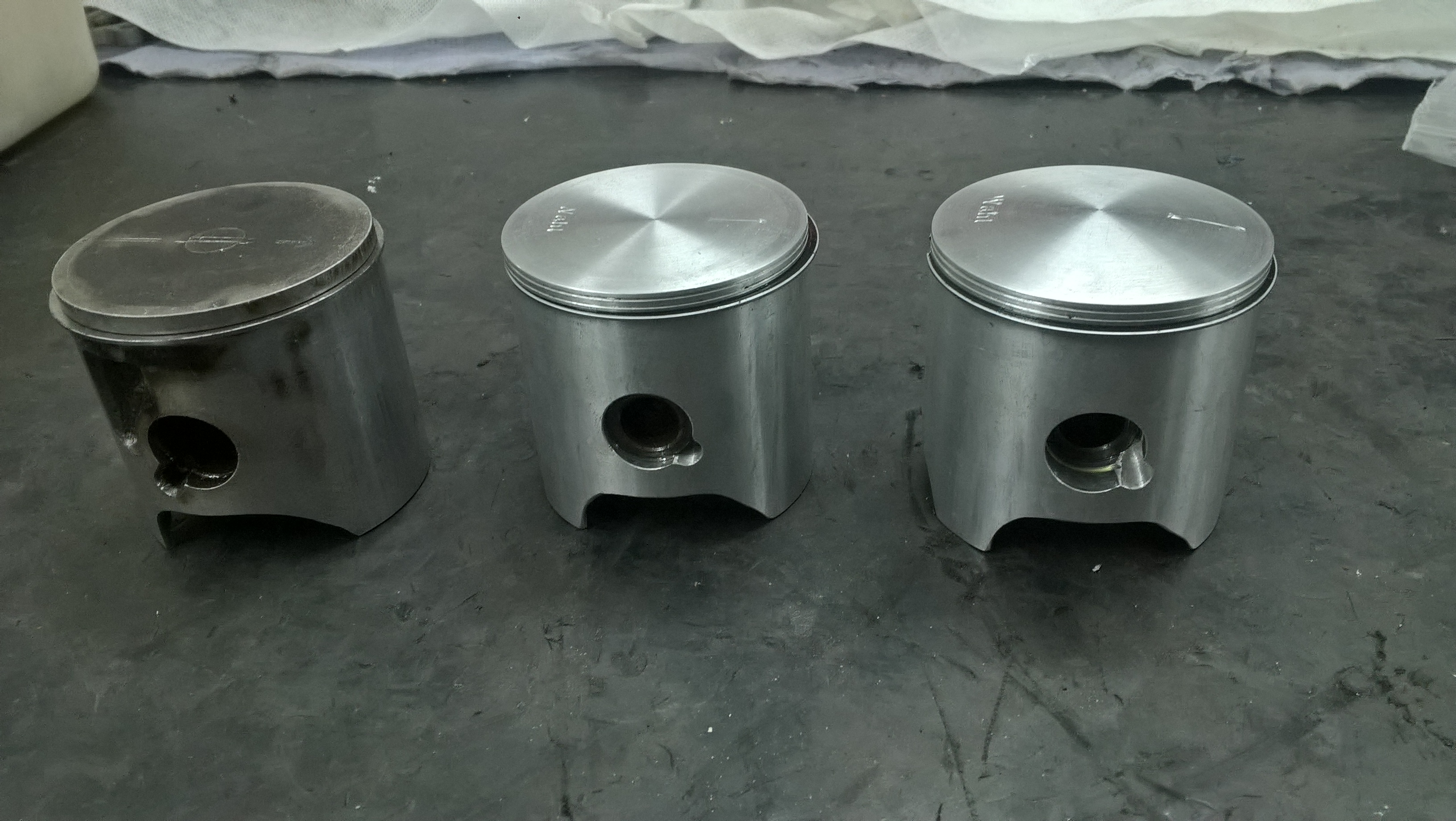 Das sind Kolben wie TZ 4DP (mit nur einem Ring), nur mit etwas größerem Durchmesser (weil der Zylinder leider so ist)…