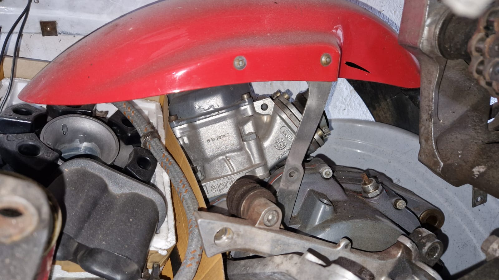 Der Motor und seine Komponenten hielten Einzug und es sah schon fast aus wie ein komplettes Moped: