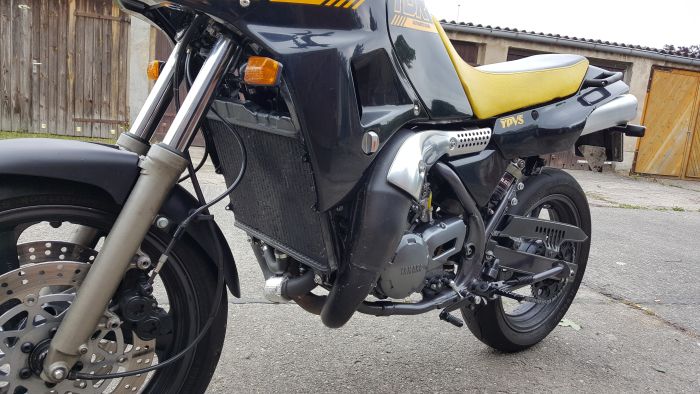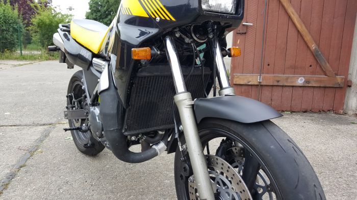 Interessantes Projekt. Das Problem mit nur einer Bremsscheibe kenne ich von meiner TDR auch. Deshalb hab ich Teile der FZR 600 Gabel verbaut. Ist halt noch alter Kram, nix zum Einstellen. Interessant an deinem Umbau ist das Vorderrad. Ich fahr gerade eine 3" TZR Gussfelge und hätte auch gern wieder Drahtspeichenräder drin. Ich hatte mir mal eine XS650 Radnabe besorgt. Die sieht aus wie die SR500 Nabe. Nach einem ersten Test, war ich aber der Meinung, dass die Bremssättel sehr nahe an den Speichen stehen. Vielleicht zu nah. Wie groß ist bei dir der Abstand zw. den Bremsscheiben, also den äußeren Stahlringen?