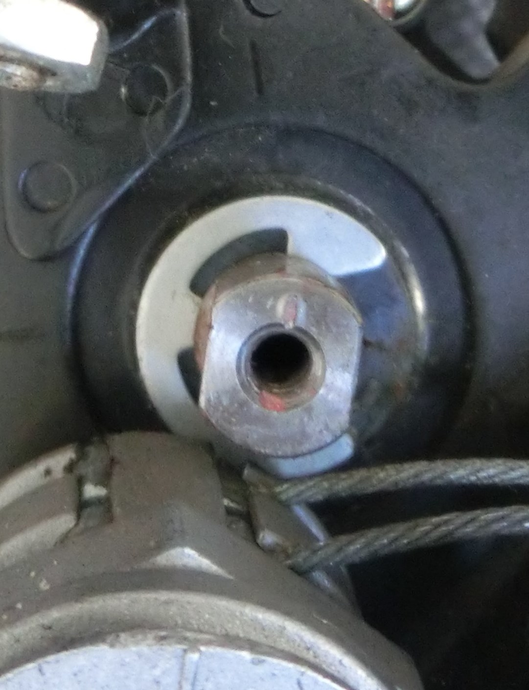 Hier nochmal ein Foto mit abgenommener Rolle. Markierung auf der Welle passt nicht zu Strich C