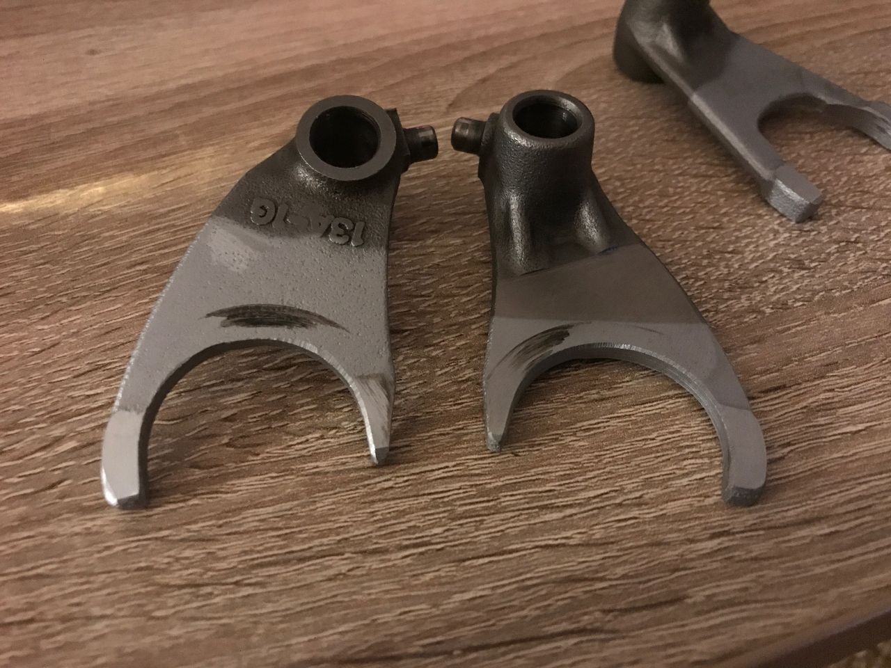 Den einzigen Verschleiß sieht man an den Schaltgabeln. Diese haben ein paar Anlaufspuren wo keine sein sollten. Diese Spuren sind allerdings nicht oder kaum mit dem Fingernagel spürbar.Ich denke aber mal, dass ich die erstmal neu kaufe, oder was sagt ihr dazu? Laufleistung sind ca. 25tkm