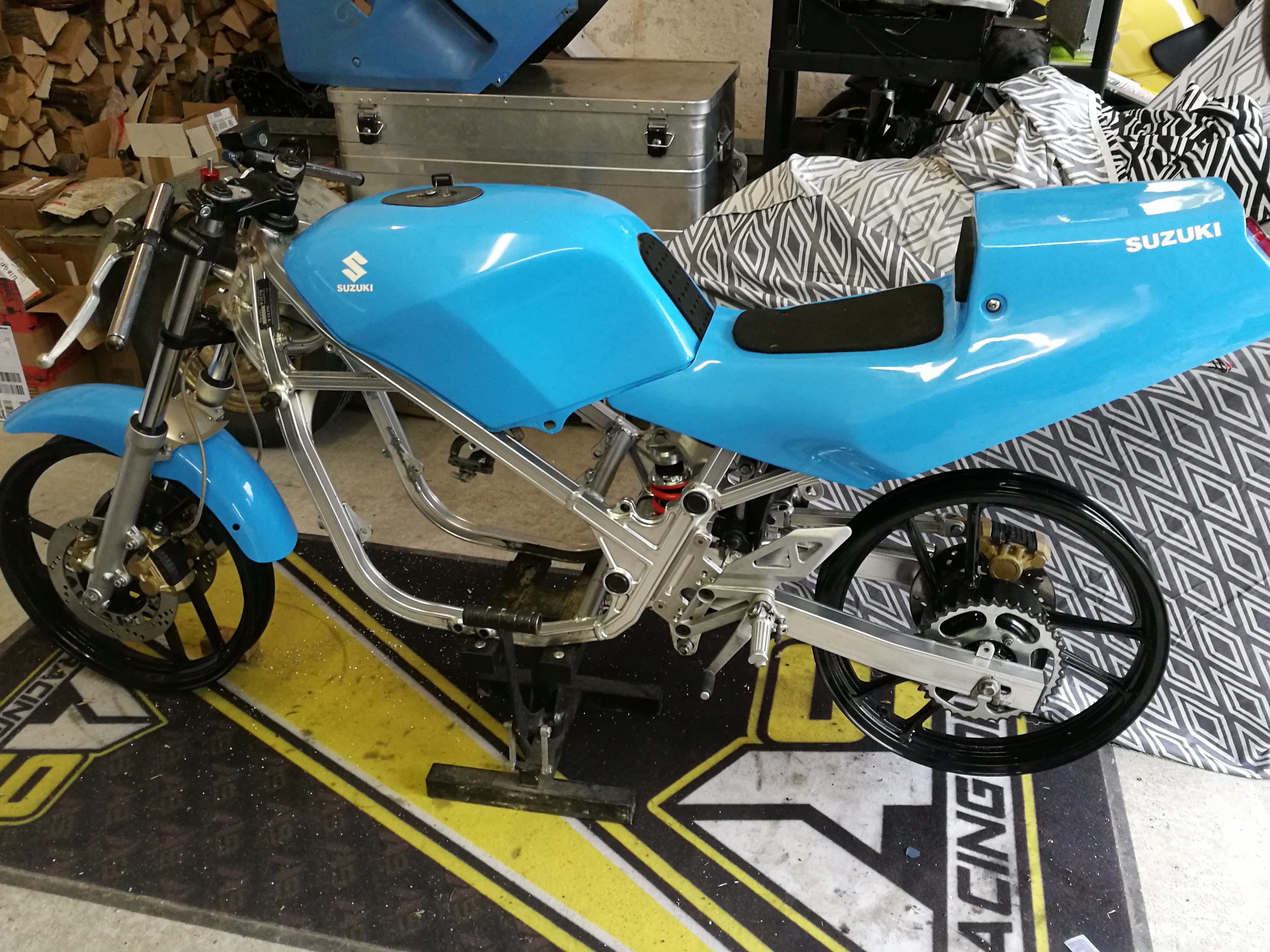 Heute ist der große Racingkühler von der RD 350 gekommen. Kurz Mal rangehalten und festgestellt das er sich leicht anpassen lässt.
