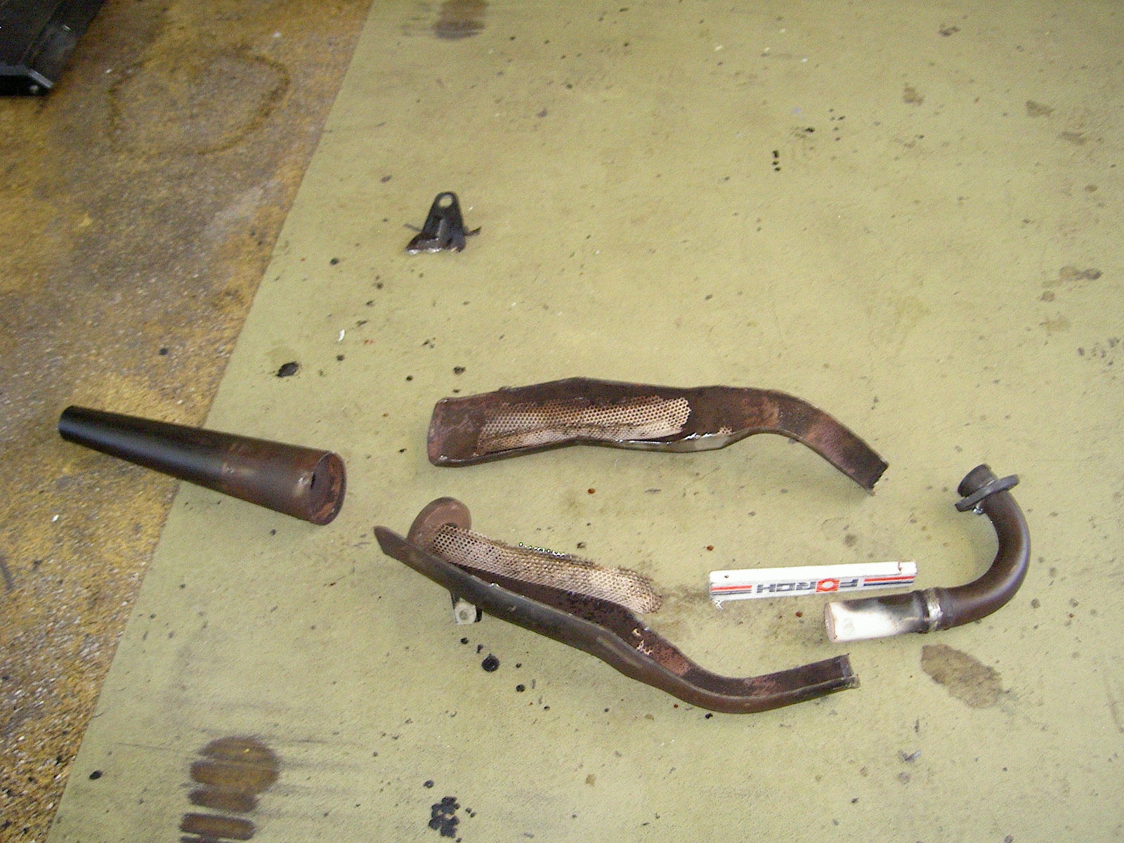 das mußte ich mir genauer ansehen. Das Rohr vorne ist zu kürzen, soweit ist alles klar. Das Dämmaterial in der Birne ist hinüber. Da sollte ich mir in der Bucht Lochblech bestellen, damit es nicht so laut wird und Glasfasermatte darunterlegen. Weiter hinten fehlt irgendwie ein Gegenkonus. Das Loch am Ende der Resonanzkammer halte ich für ausreichend groß.
